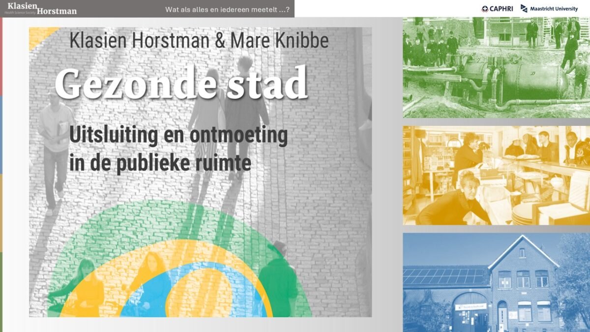 In ons onderzoek naar het belang van publieke ruimte voor gezonde maatschappij heeft het historische voorbeeld van de riolering een grote rol gespeelt. Publieke ruimte kun je zien als een sociaal rioleringsstelsel, een bovengrondse infrastructuur van wegen en knooppunten voor sociaal verkeer waar iedereen van afhankelijk is voor welzijn en gezondheid. De focus op publieke ruimte zet niet de vraag centraal ‘wie leeft ongezond’, maar ’waar ontstaan gezondheid en zorgzaamheid’.