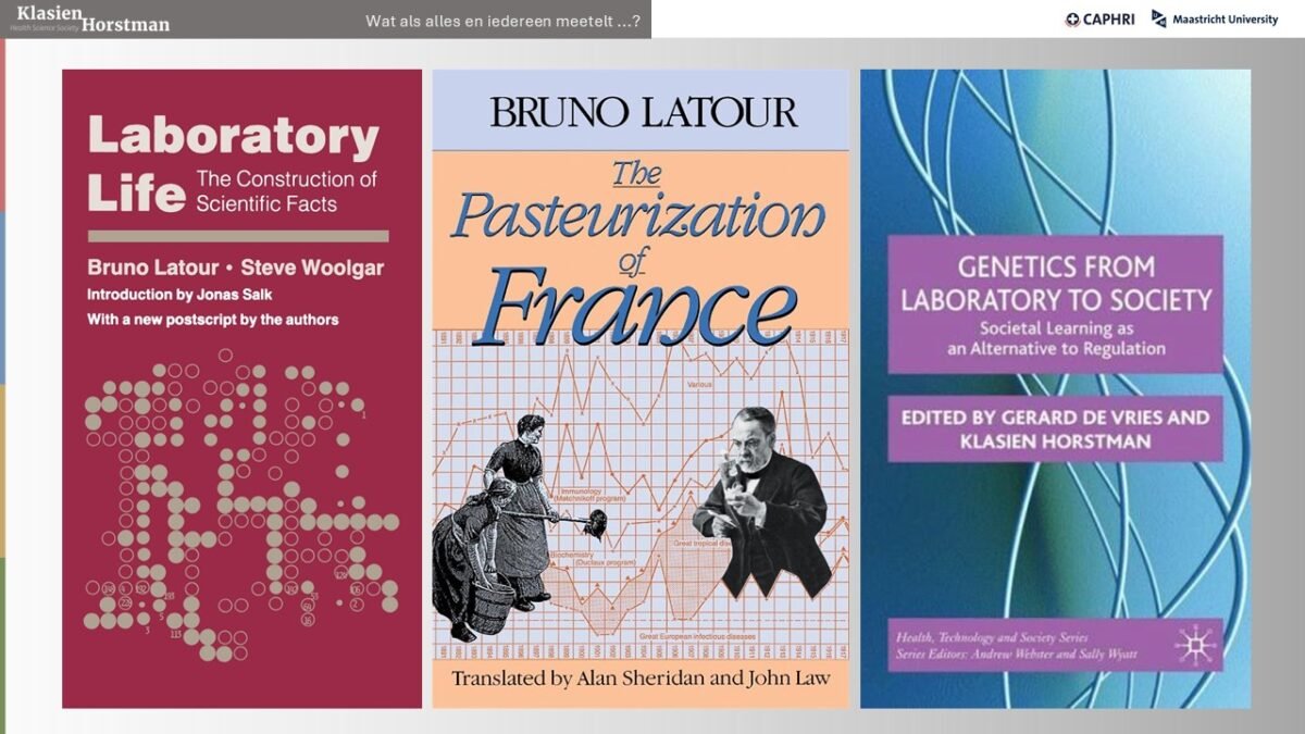 Het bijzondere aan het werk van Latour is dat hij laat zien waarom wetenschap niet zomaar een mening is: wetenschappers zijn meesters in schaalvergroting en schaalverkleining. Een wereldwijde pandemie bestuderen ze door te experimenteren met een virus in een klein reageerbuisje en de resultaten worden weer vertaald naar alle uithoeken van de wereld. Een bijzondere beweging. Maar, zo stelde Latour, wetenschappers doen dat niet alleen. De virussen, proefdieren, geld, patiënten, politiek moeten meewerken om bruggen te kunnen slaan tussen laboratorium en maatschappij.
