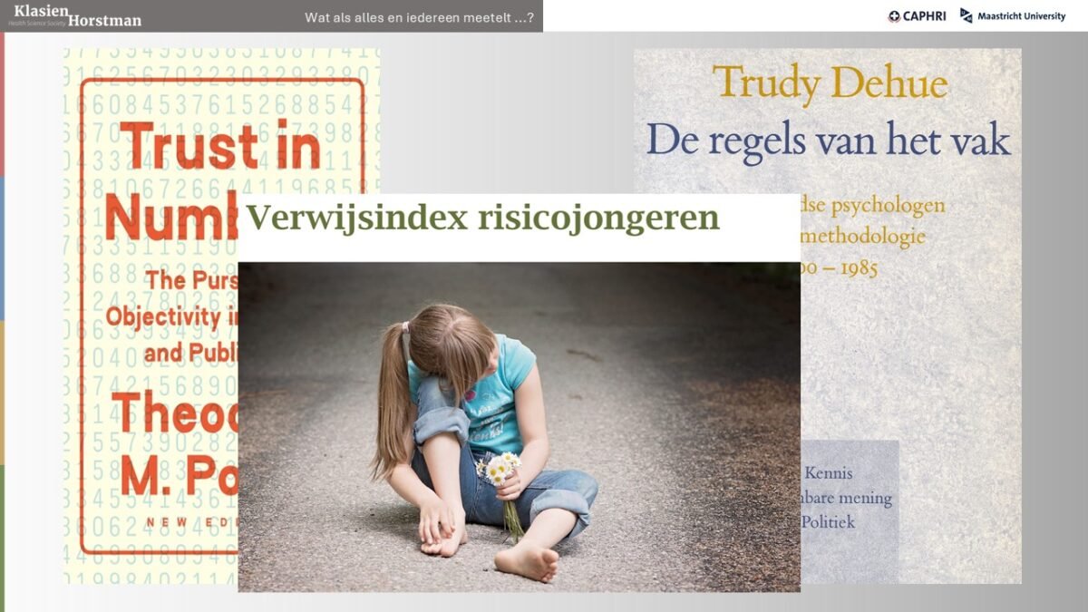 Een derde inspiratiebron was het werk van de wetenschapshistoricus Theodor Porter ‘Trust in numbers.’. Porter onderzocht hoe wetenschap en democratie samenhangen. Hij schetst hoe in de 20e eeuw de toename van overheidstaken en overheidsbudgetten voor gemeenschappelijke doelen – voor onderwijs, zorg, sociale zekerheid – leidde tot een grotere druk tot publieke verantwoording. In een democratie die pluriformer en meer-stemmiger werd, werd het steeds ingewikkelder om antwoord te geven op de vraag van burgers ‘wordt mijn belastinggeld wel goed besteed?’